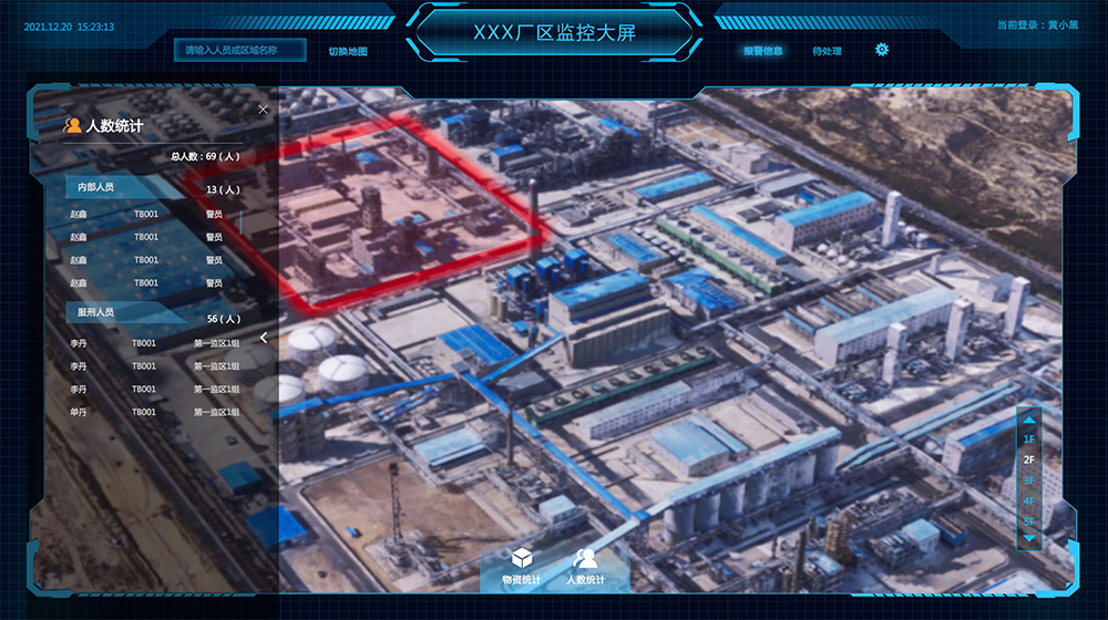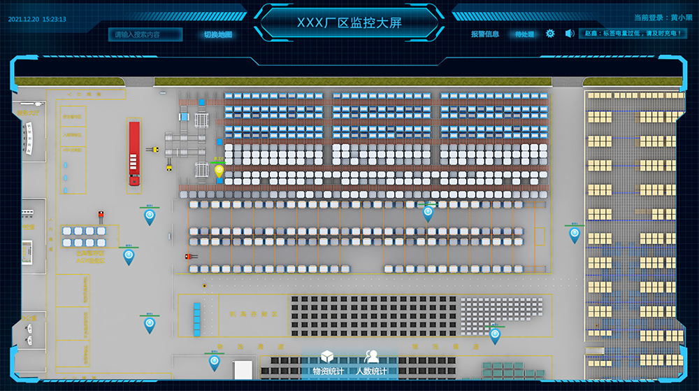 通過預先在某空間安裝好定位基站,基站與標簽相互通信以TOF(飛行時間)、TDOA(到達時間差)、AOA(到達角)的定位算法解算標簽位置,最終將裝配了標簽的人員、車輛、物資位置信息投射到顯示終端。